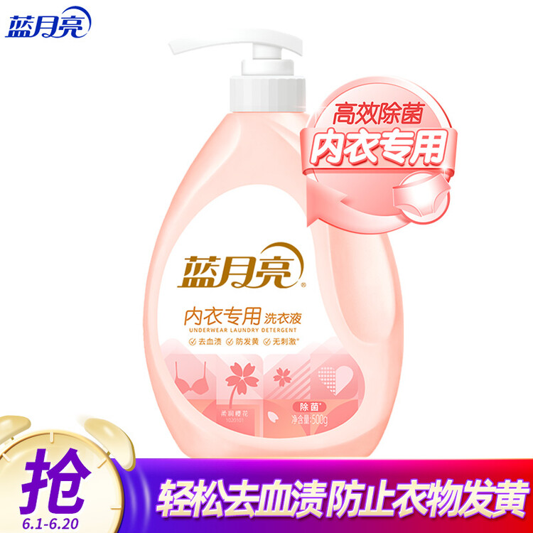 蓝月亮 内衣专用洗衣液500g瓶 男女通用内衣裤除菌 生理期专用去血渍 易漂洗无残留 柔润樱花香【包装损商品良好】
