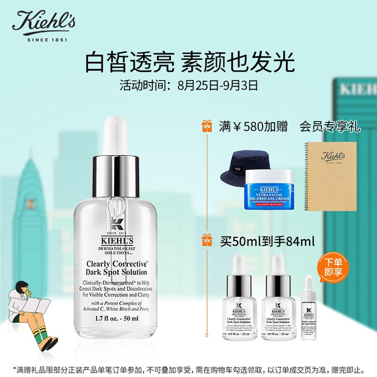 科颜氏(Kiehls)新集焕白均衡亮肤淡斑精华液50ml 玻色因淡化痘印提亮肤色美白透亮改善暗沉 化妆品护肤【包装损商品良好】