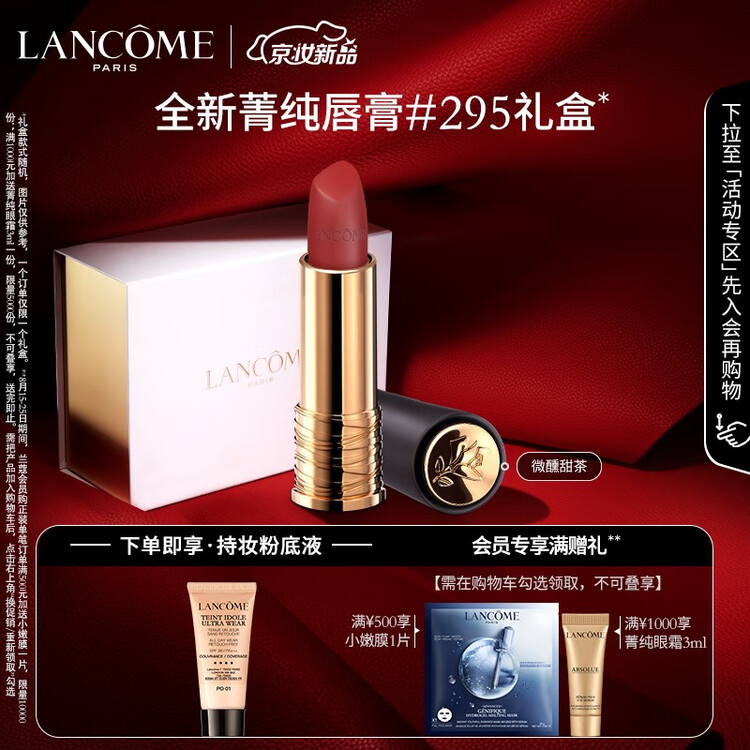兰蔻菁纯丝绒雾面唇膏295 3.4g 小蛮腰哑光口红微醺甜茶 显白化妆品礼盒礼物送女友 11.11爆款【包装损商品良好】