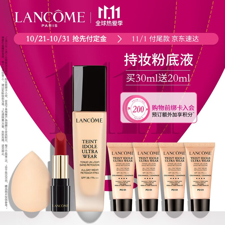 兰蔻(LANCOME)持妆轻透粉底液P-01 30ml 化妆品套装 隔离轻薄 持久遮瑕防汗 礼盒【包装损商品良好】