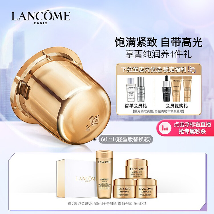 兰蔻(LANCOME)菁纯面霜臻颜精萃乳霜60ml轻盈版替换芯 护肤品礼盒面霜淡纹紧致饱满【包装损商品良好】