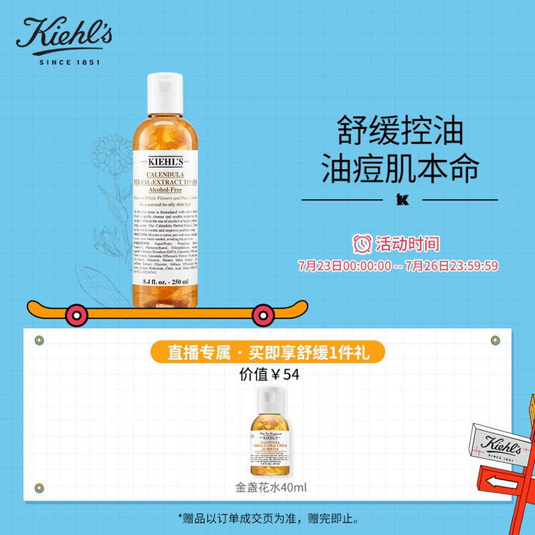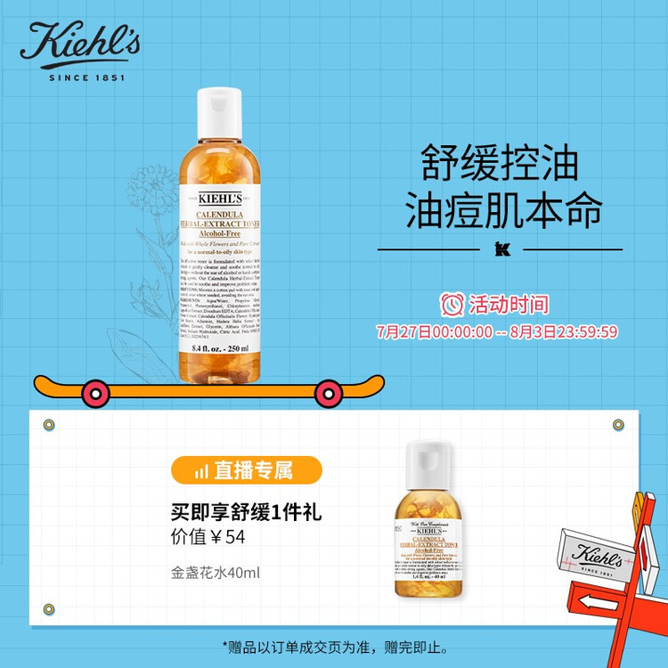科颜氏(Kiehls)金盏花植萃爽肤水250ml化妆水护肤水收缩毛孔抗痘补水保湿舒缓维稳男女通用化妆品护肤品【包装损商品良好】