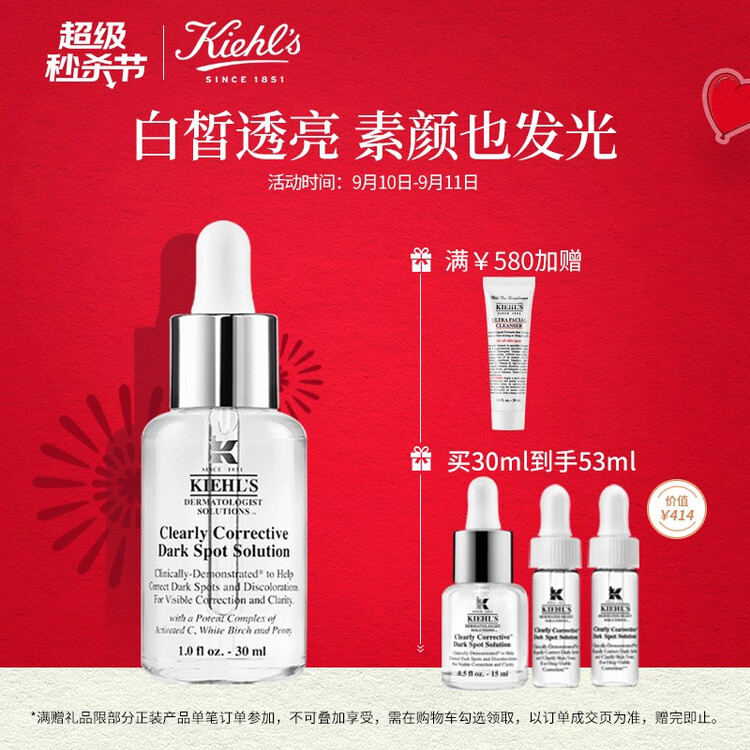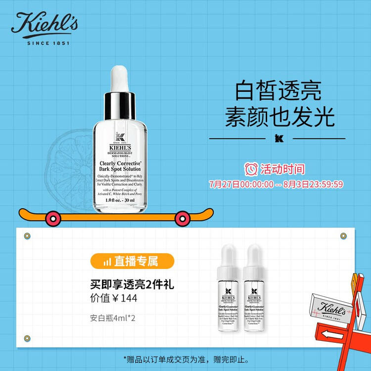 科颜氏(Kiehl’s)新集焕白均衡亮肤精华液30ml 玻色因安白瓶 淡化痘印提亮肤色美白透亮(直播专属)【包装损商品良好】