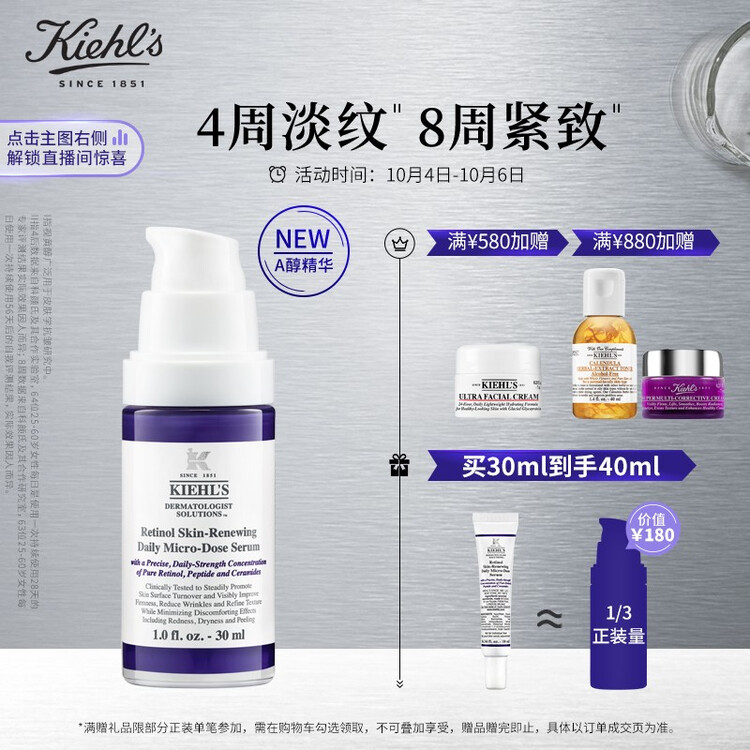 科颜氏(Kiehls)视黄醇抗皱紧致修护精华乳30MLA醇淡纹提拉紧致抗皱收缩毛孔烟酰胺多肽化妆品护肤品【包装损商品良好】