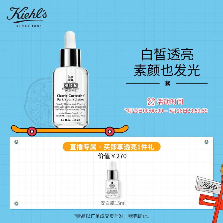 科颜氏(Kiehls)新集焕白均衡亮肤淡斑精华液50ml 玻色因淡化痘印提亮肤色美白透亮改善暗沉 化妆品护肤【包装损商品良好】