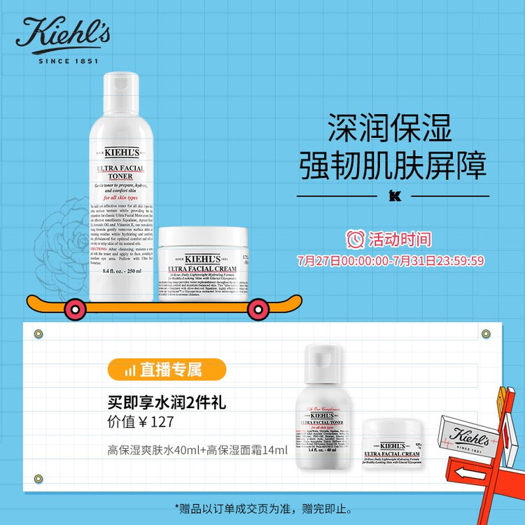 科颜氏(Kiehls)明星高保湿2件套(爽肤水250ml 面霜50ml)水乳补水保湿男女通用化妆品护肤品套装礼盒【包装损商品良好】