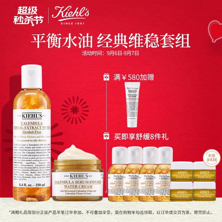 科颜氏(Kiehls)金盏花舒缓2件套(爽肤水250ml 面霜50ml)水乳补水保湿祛痘化 妆品护肤品套装礼盒【包装损商品良好】