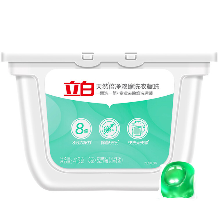 立白天然倍净浓缩洗衣凝珠52颗(盒装) 8倍洁净力 杀菌除螨【包装损商品良好】