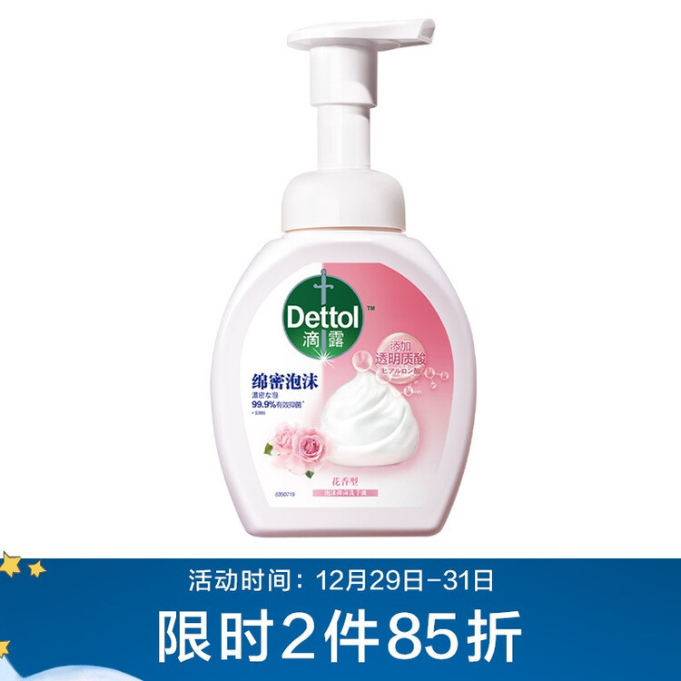 滴露Dettol泡沫抑菌洗手液花香型250ml 有效抑菌 99.9%【包装损商品良好】