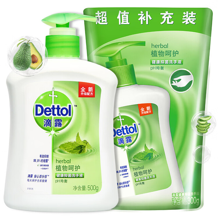 滴露Dettol 健康抑菌洗手液 植物呵护 特惠装 500g/瓶 (二手无赠品)易冲洗【包装损商品良好】