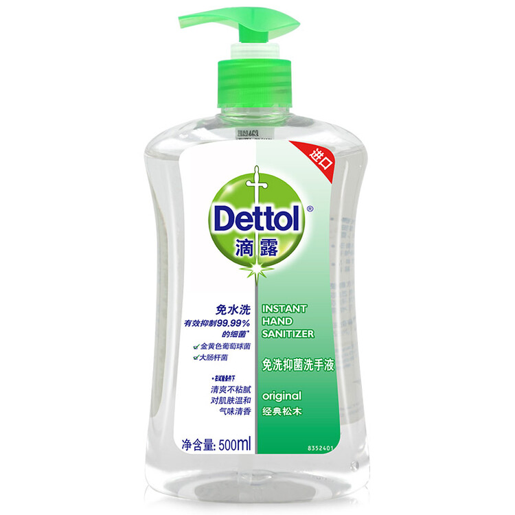 滴露Dettol 免洗抑菌洗手液 经典松木 500ml/瓶 进口免洗手消毒液 儿童家用【包装损商品良好】