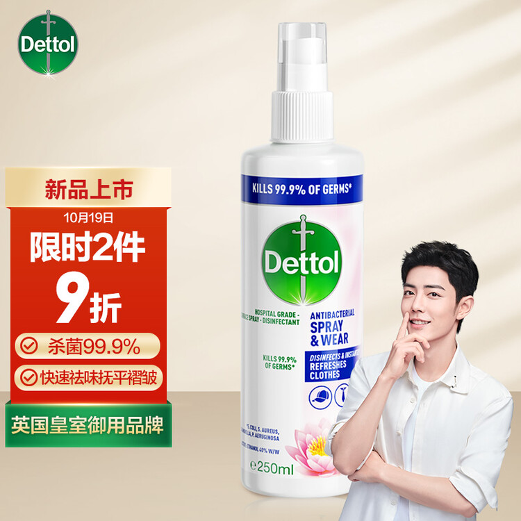 滴露Dettol衣物多效护理喷雾睡莲幽香250ml 杀菌99.9%快速祛味持续清新减少褶皱【包装损商品良好】