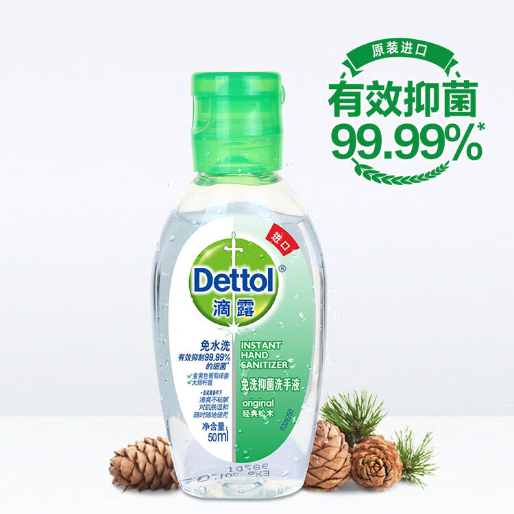 滴露Dettol 免洗抑菌洗手液 经典松木 50ml/瓶 进口免洗 儿童家用 免洗手消毒液 含酒精成分【包装损商品良好】