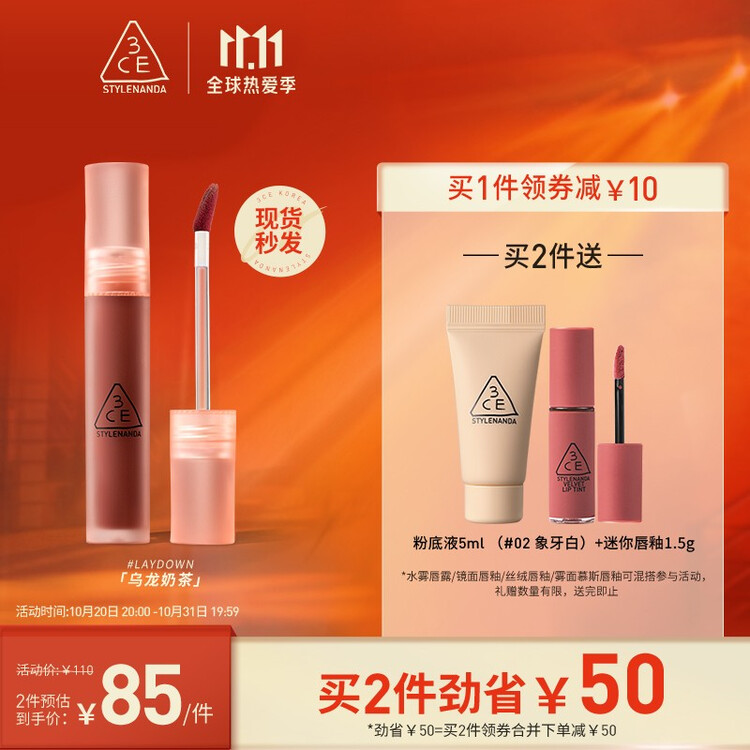3CE三熹玉水雾唇露网红唇釉口红#肉桂色#LAYDOWN乌龙奶茶ins【包装损商品良好】