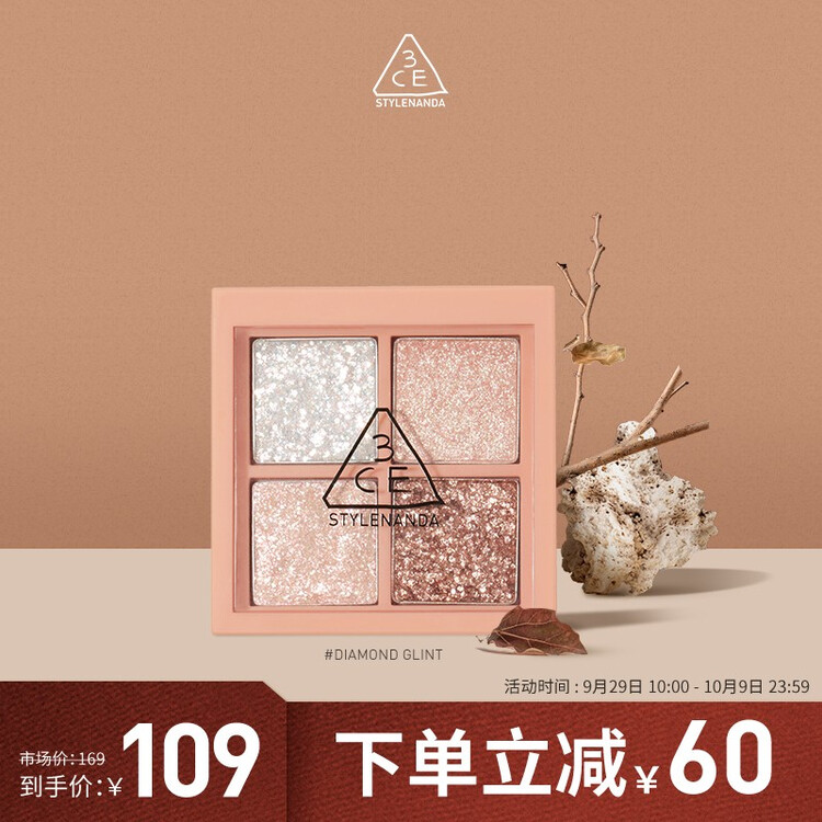 3CE三熹玉网红四色眼影盘#半糖粉钻#DIAMOND GLINT粉钻盘【包装损商品良好】
