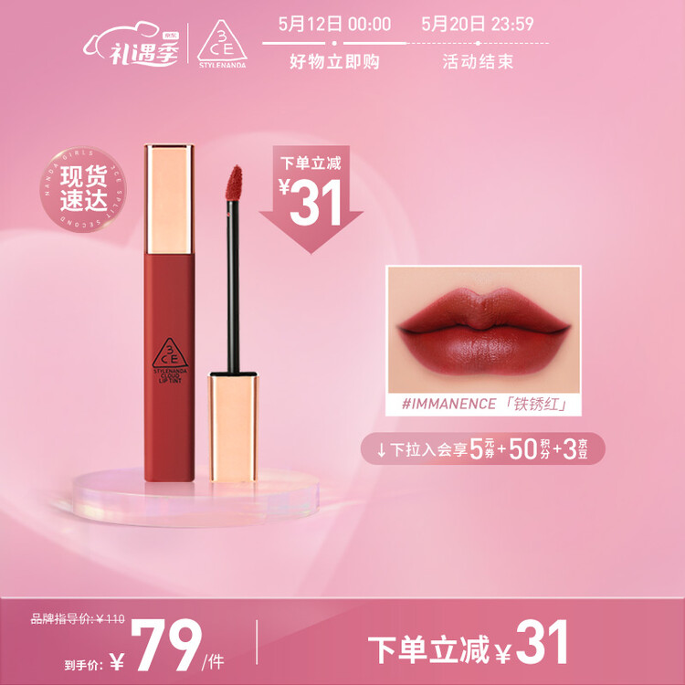 3CE三熹玉 浓郁哑光唇釉云朵唇釉口红 #铁锈红#IMMANENCE 520礼物送女友【包装损商品良好】