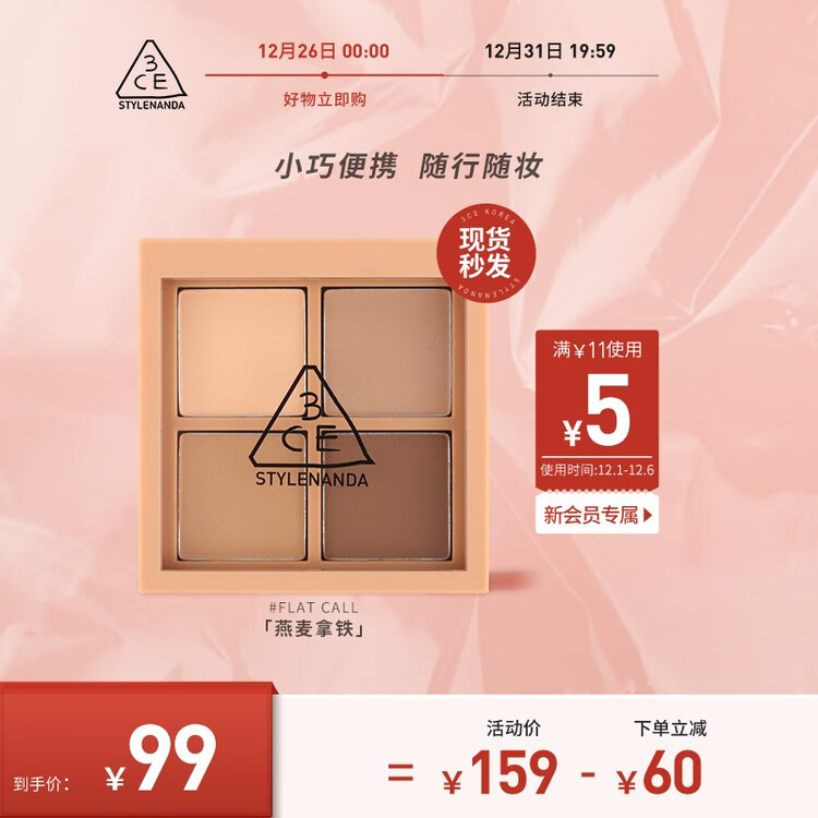 3CE三熹玉网红四色眼影盘化妆品圣诞礼物 #燕麦拿铁#FLAT CALL【包装损商品良好】
