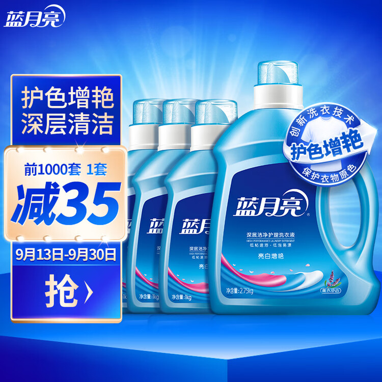 蓝月亮亮白增艳洗衣液超值新套装 薰衣草香 2.75kg瓶*1 1kg瓶*3 洁净去污 易漂洗【包装损商品良好】