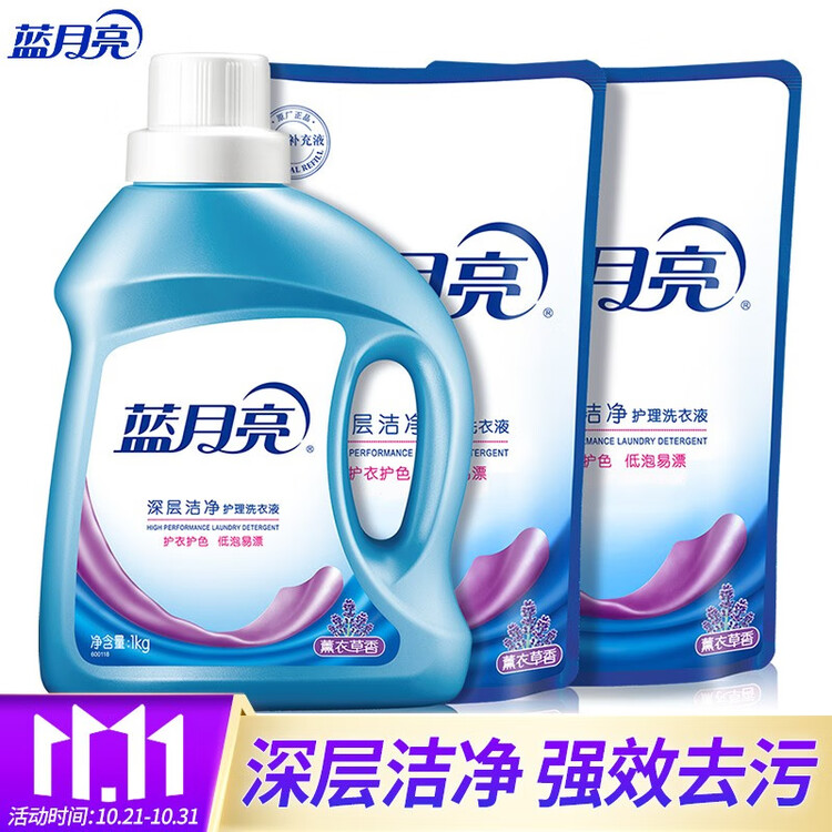 蓝月亮深层洁净洗衣液4斤套装:薰衣草1kg*1瓶 500g*2袋【包装损商品良好】