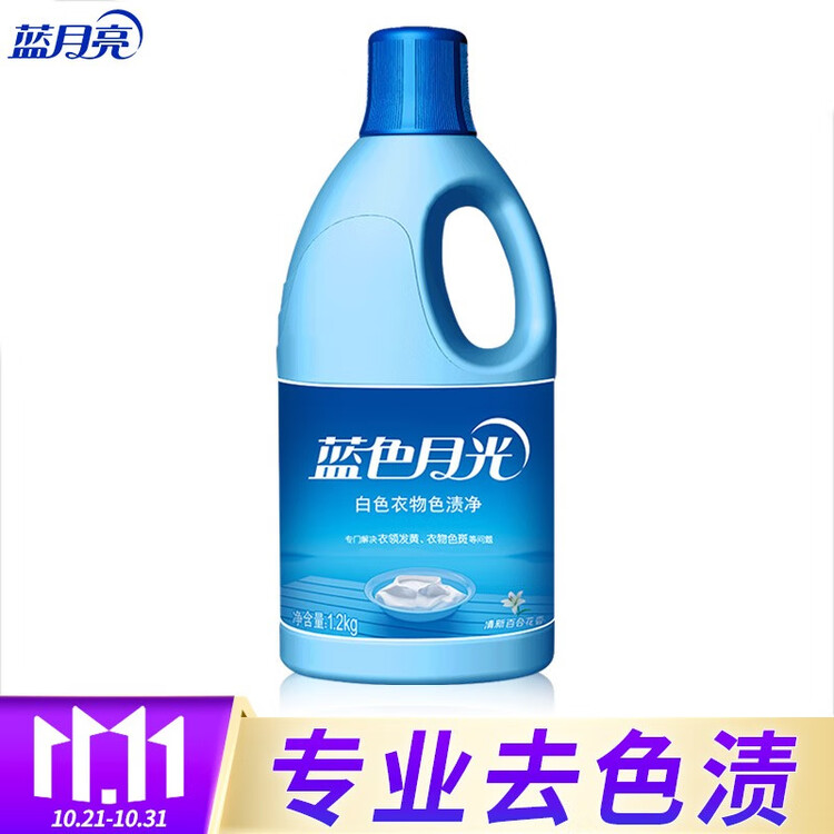 蓝月亮 蓝色月光 白色衣物色渍净 漂渍液 漂白剂 白漂1.2kg/瓶 含氯除菌 清洁下水道 除菌率99.9%【包装损商品良好】