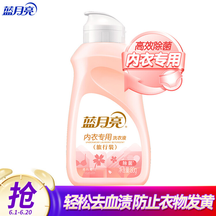 蓝月亮 男女通用内衣裤洗衣液(旅行装登机免托运)80g瓶 生理期去血渍 高效除菌 柔润樱花香【包装损商品良好】