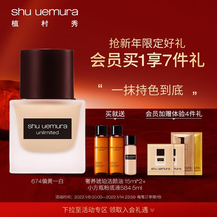 植村秀(shu uemura)小方瓶羽纱持妆粉底液674 35ml 控油遮瑕抗氧化持色 轻薄不脱妆 油皮混油皮适用【包装损商品良好】