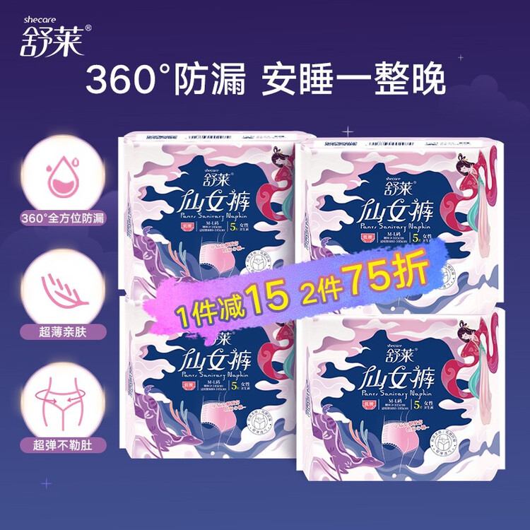 舒莱 超薄透气安心裤 安睡裤裤型卫生巾20片 超长夜用夜安裤超熟睡甜睡裤姨妈巾【包装损商品良好】