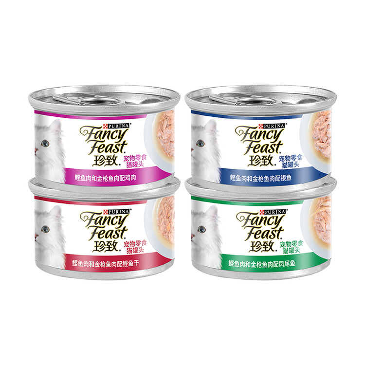 京东JOY定制款 珍致 FancyFeast 白金装猫罐头 金枪鱼肉系列80g 四口味随机发货 猫咪湿粮零食【包装损商品良好】